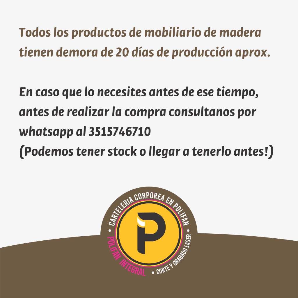 Todos los productos de mobiliario de madera tienen demora de 20 días de producción aprox.